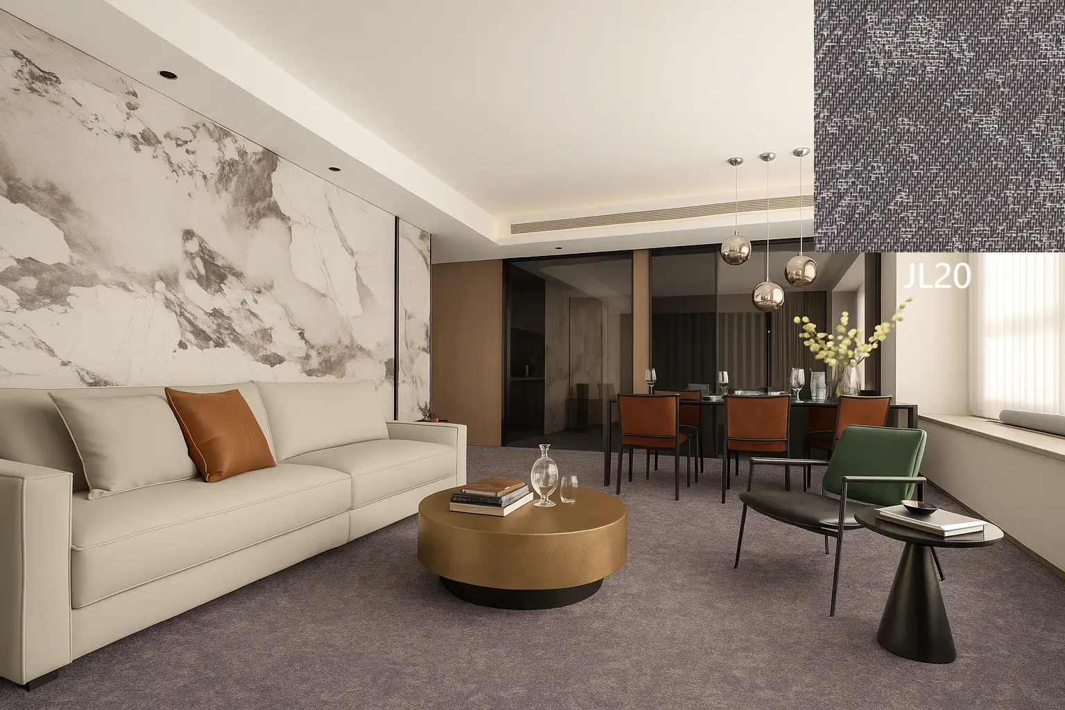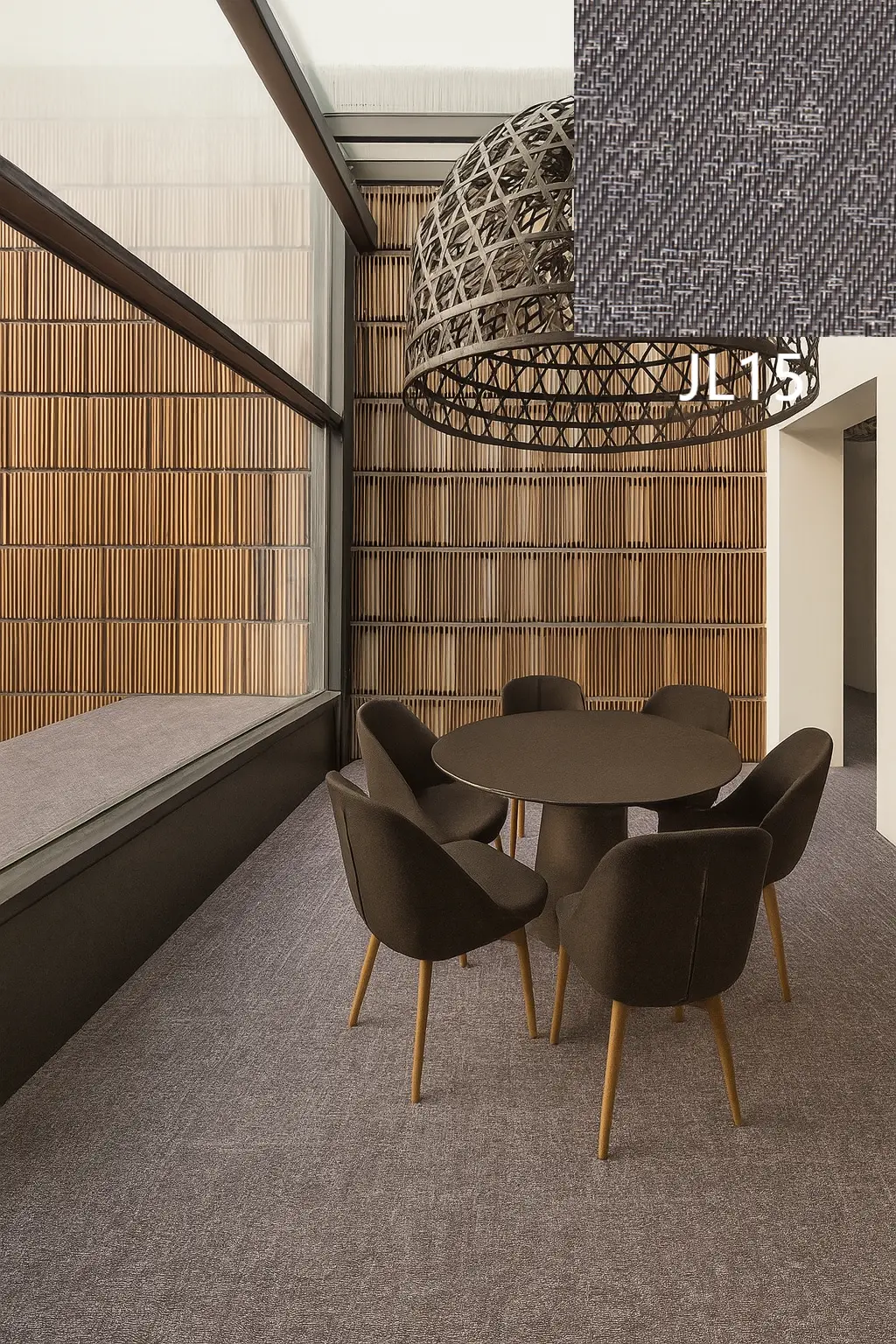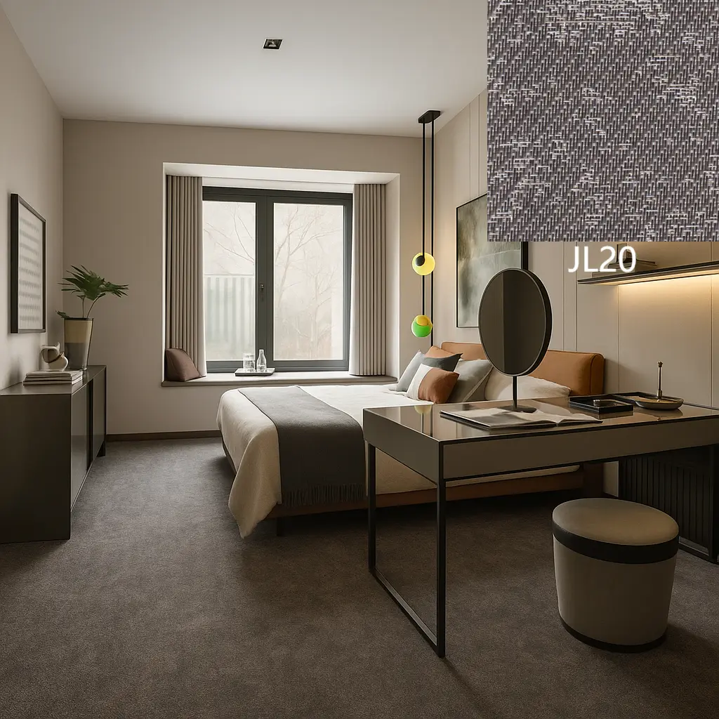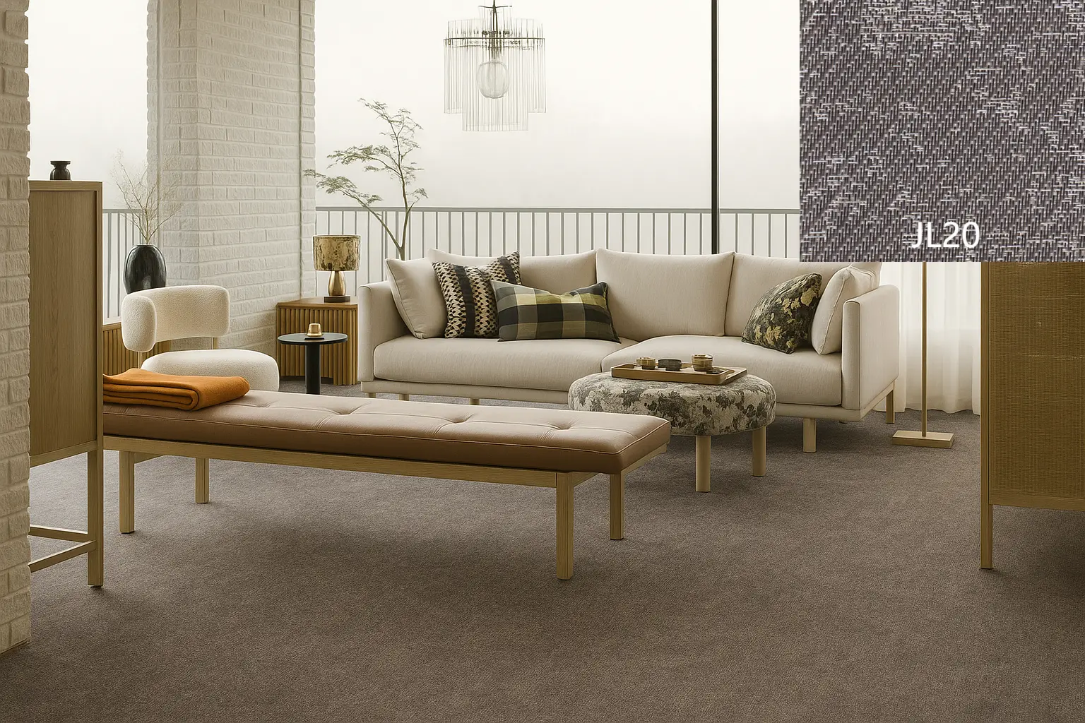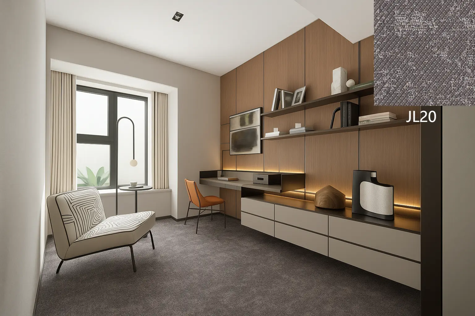 El tejido de la serie Imagine presenta una estructura de sarga jacquard bicolor que transmite estabilidad y resistencia. Su distintiva textura de dos colores crea un patrón simple pero atractivo. Combinando calidez con sutileza, inspira una creatividad infinita al expresar un encanto introvertido.